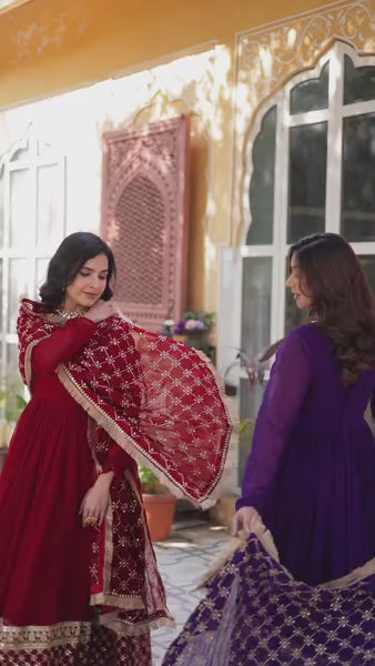 Regal Maroon & Gold Embroidered Suit