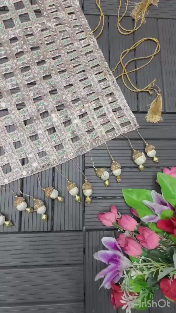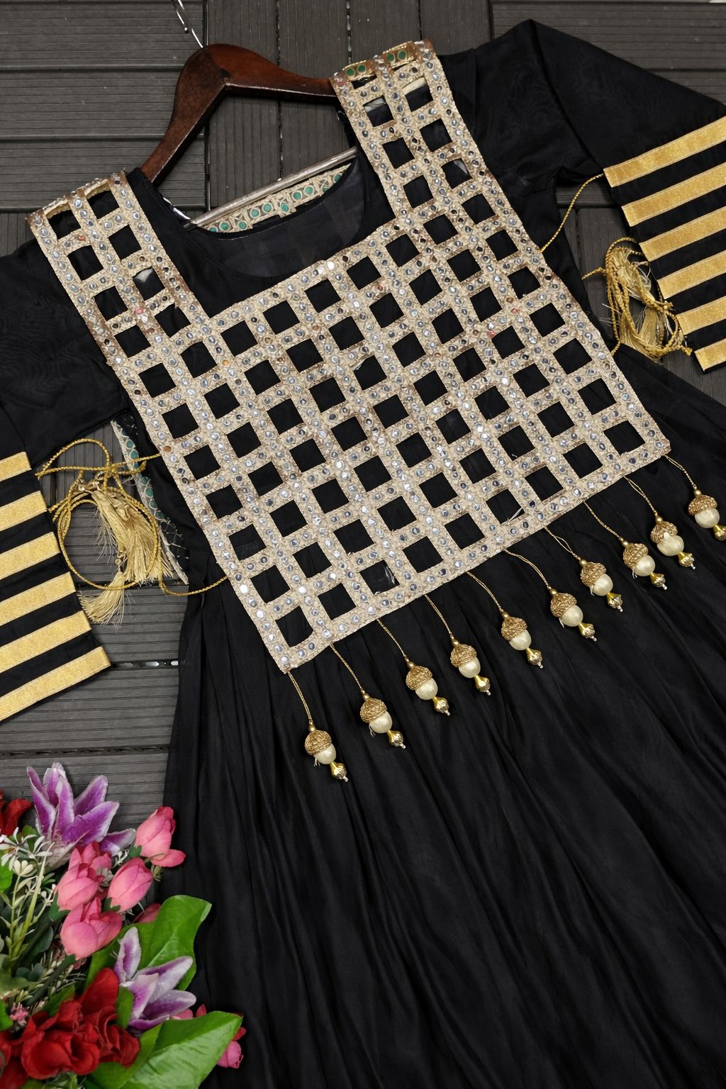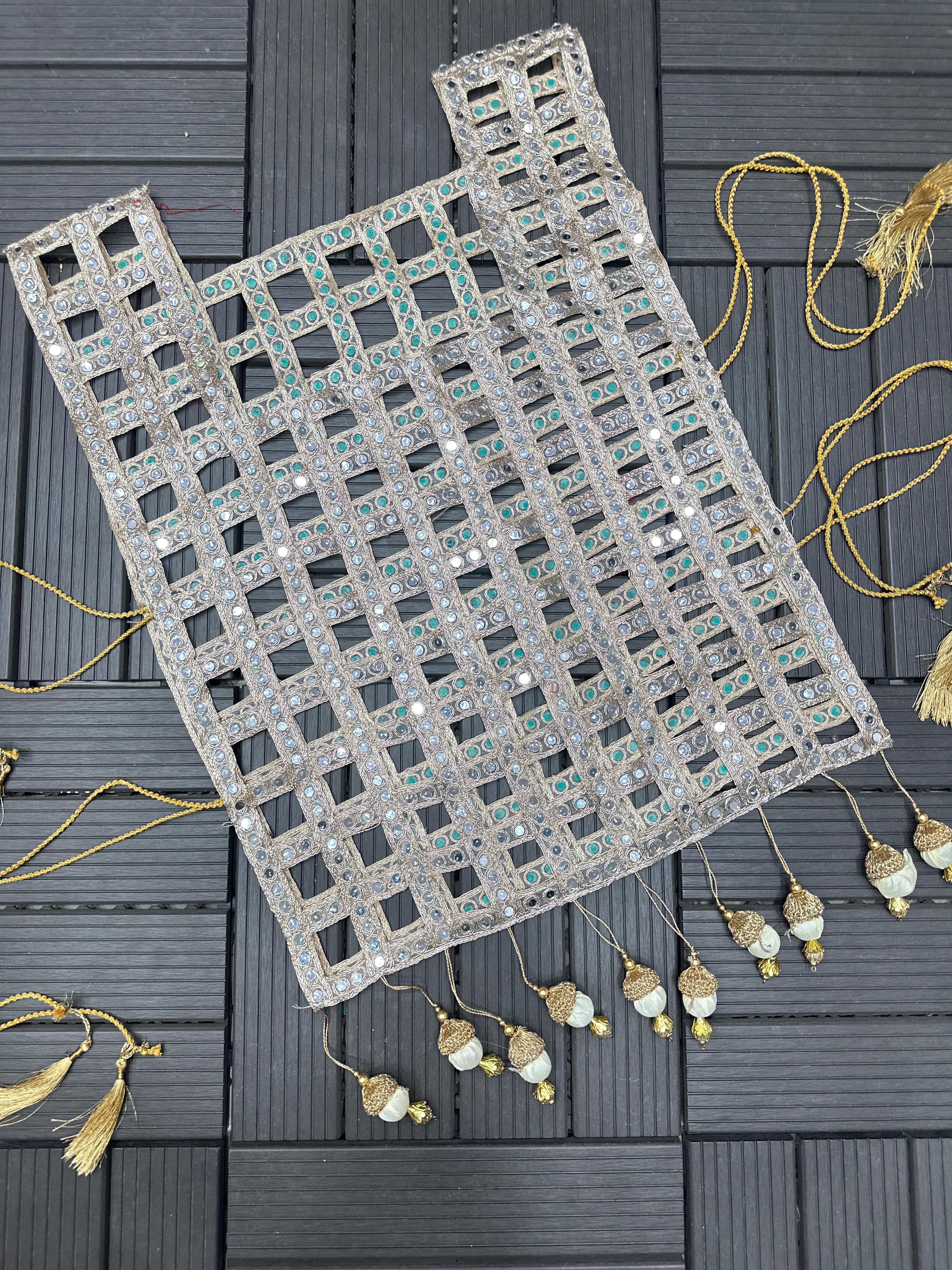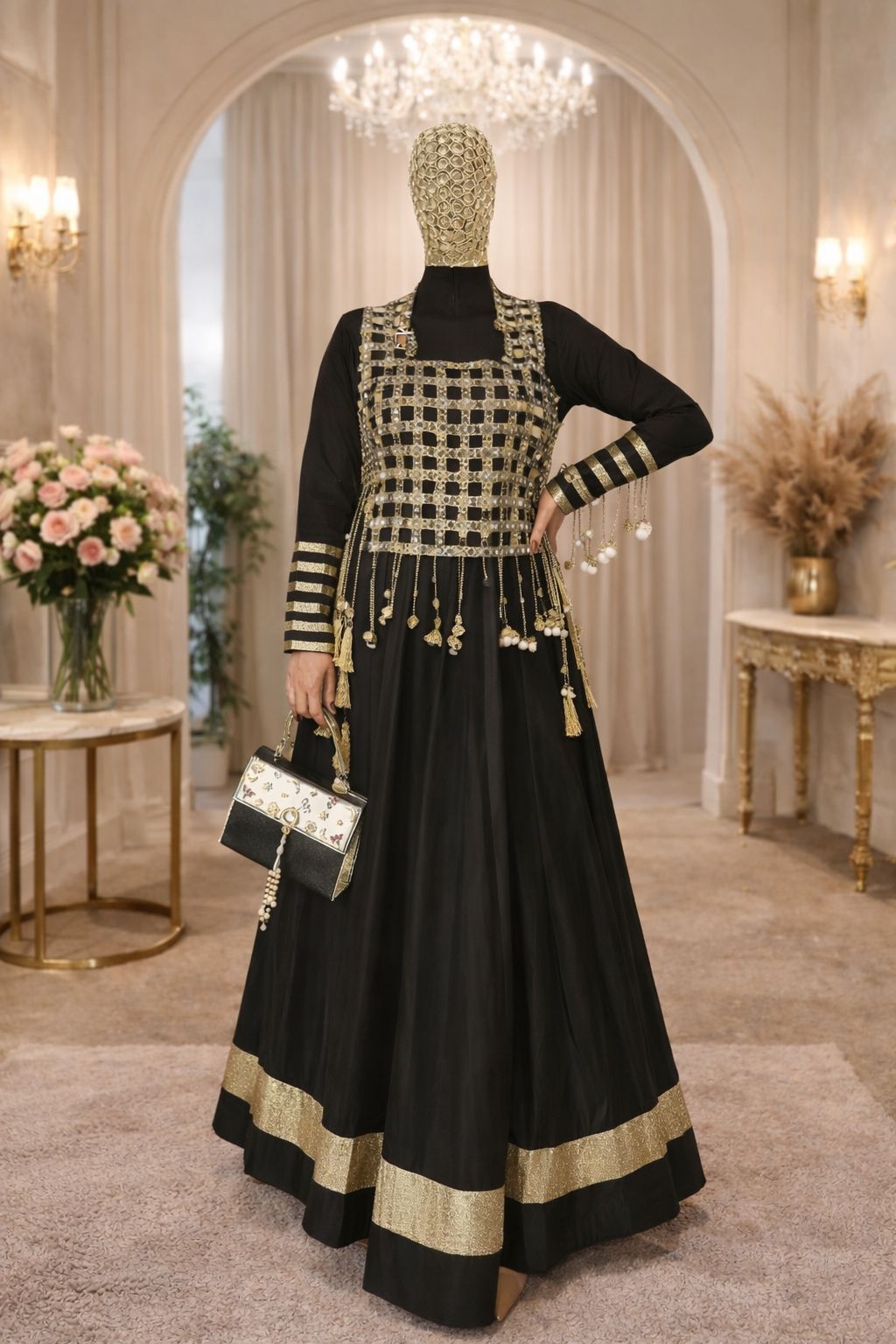 Cream and Gold Mirror-Work Anarkali with Embellished Vest