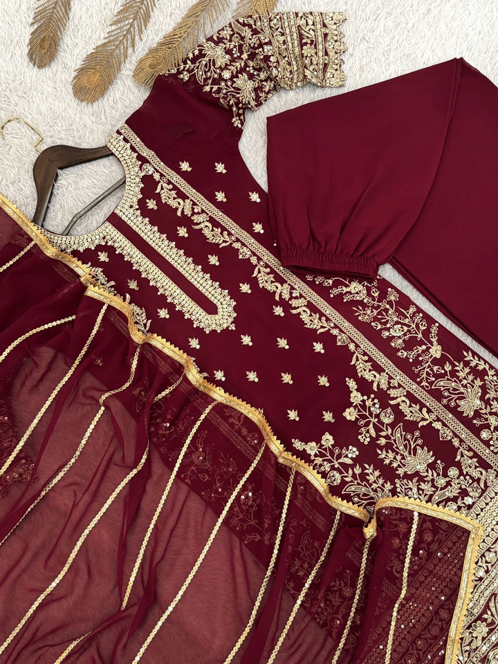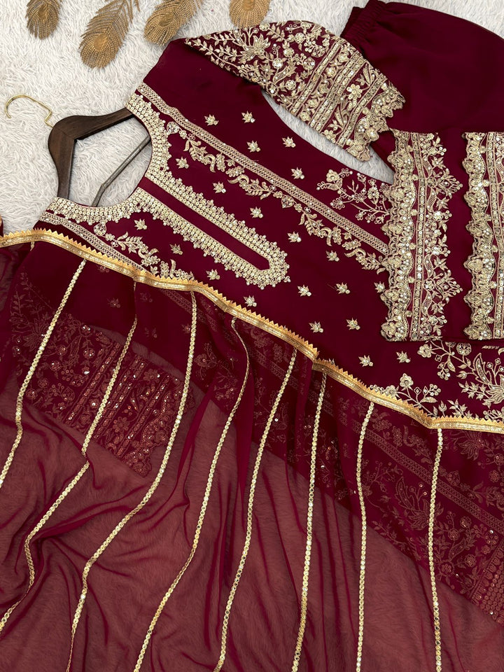 Regal Maroon & Gold Embroidered Suit