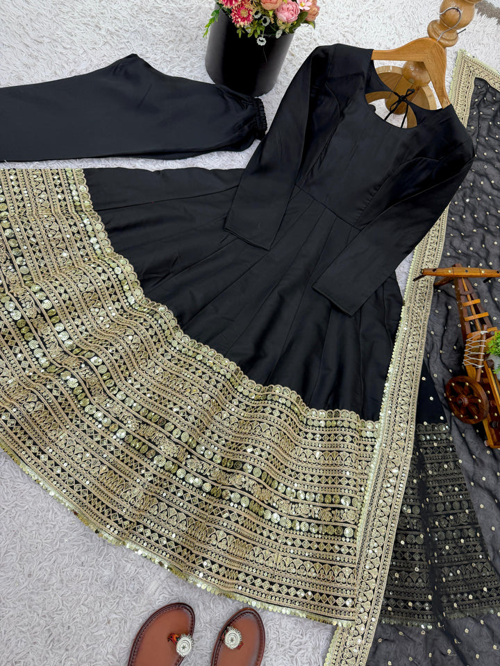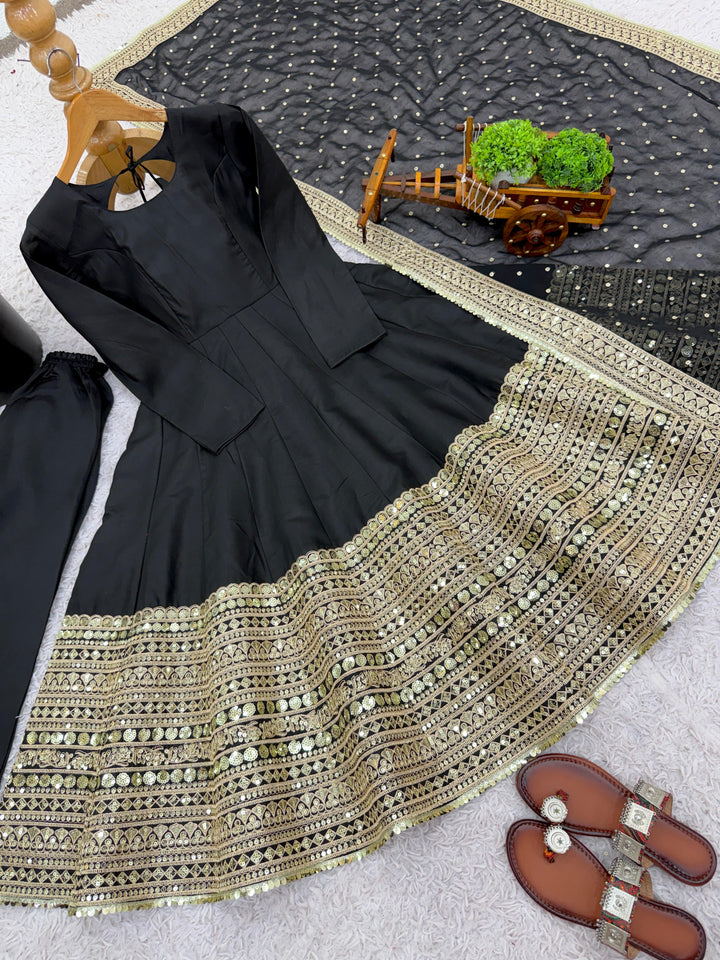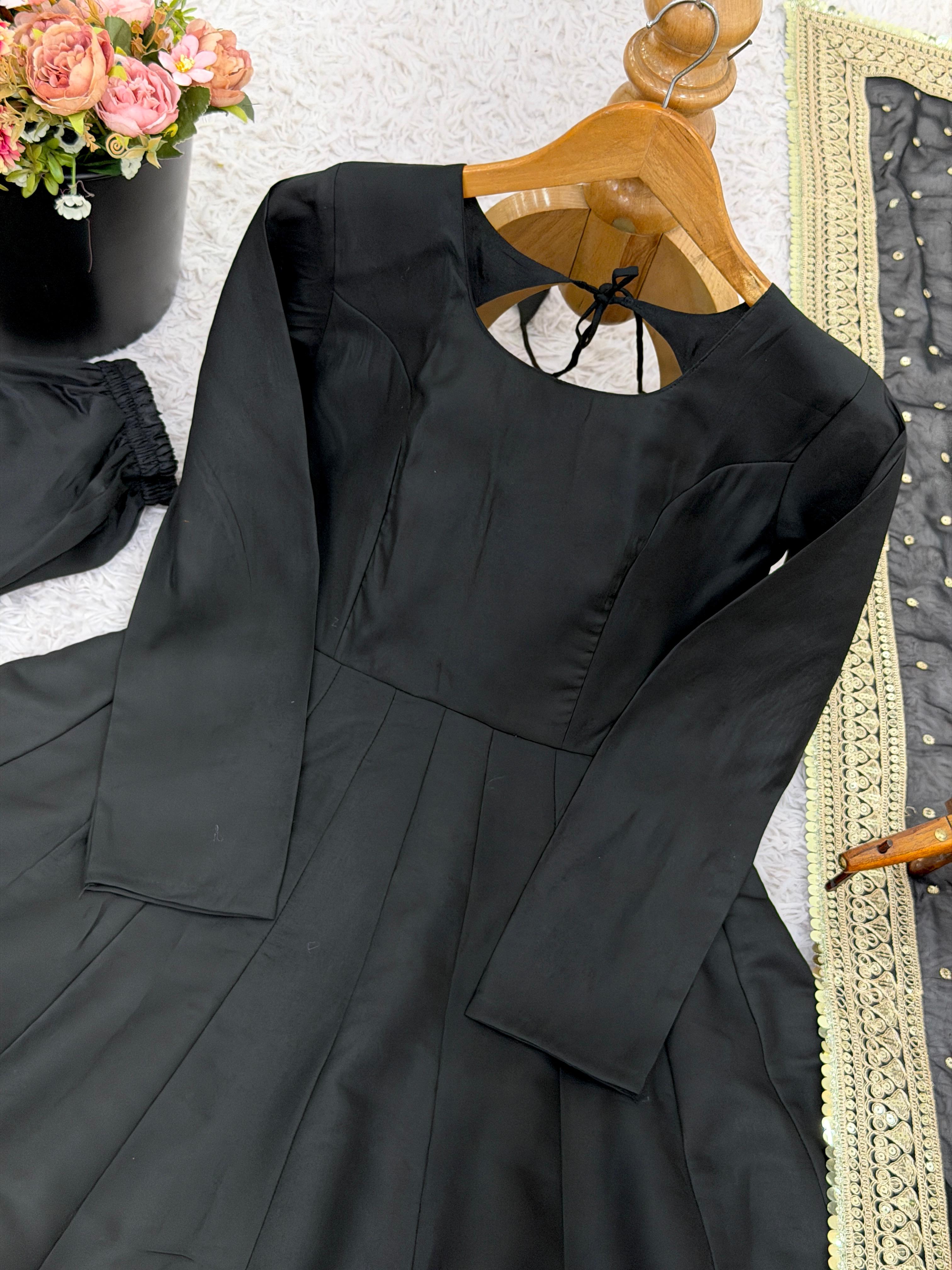 š¤ The Majestic Black Roman Silk Anarkali Gown Set
